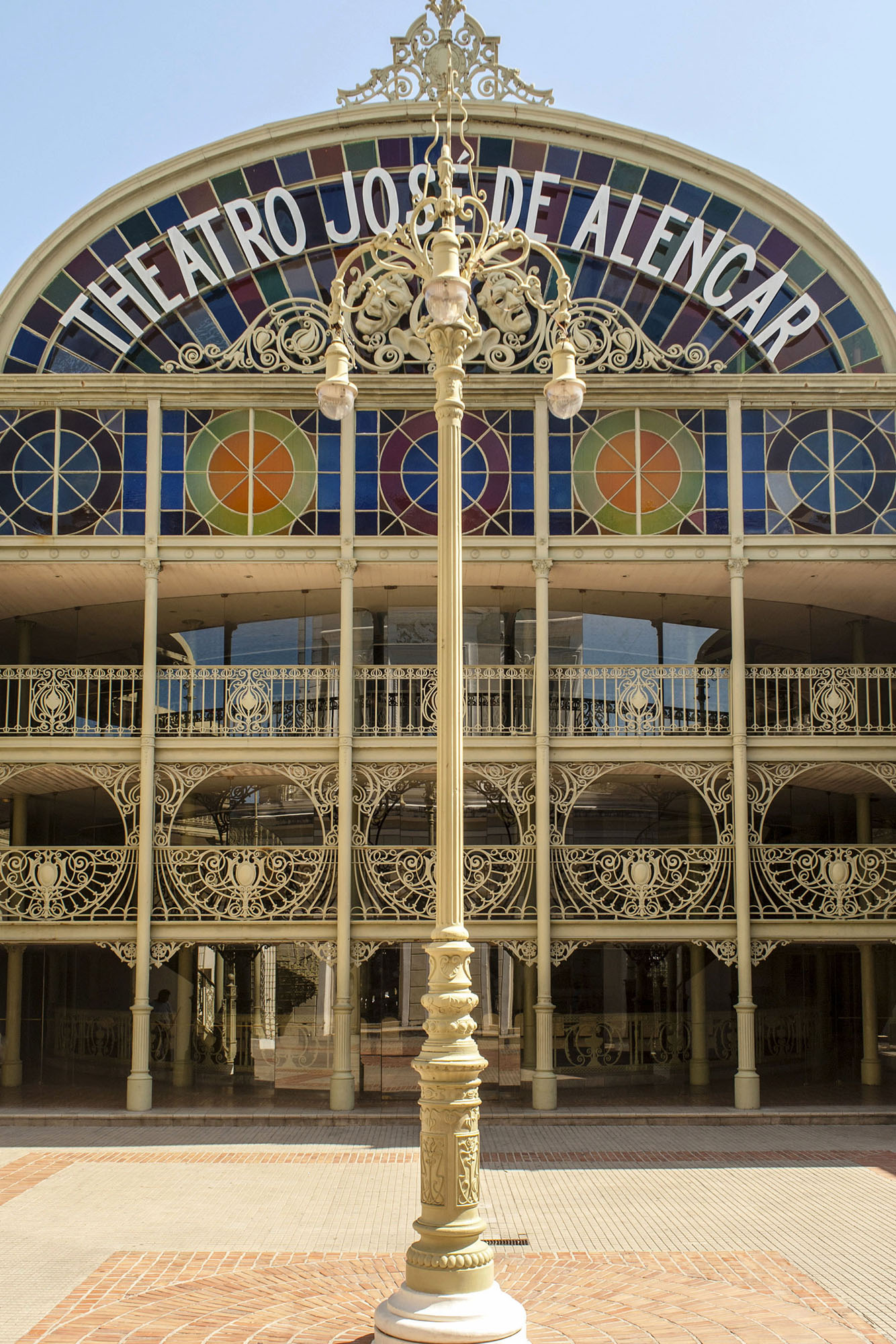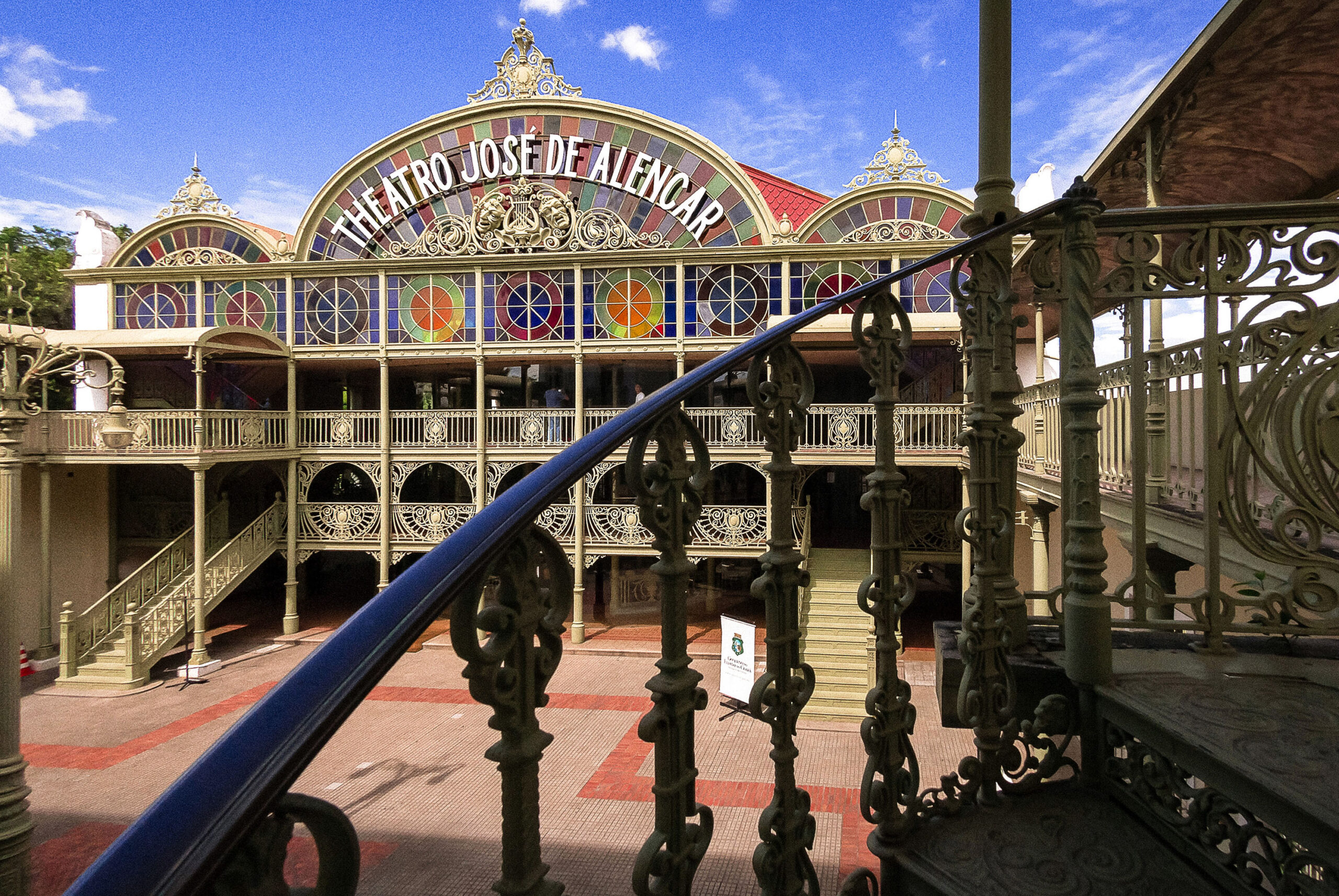 Inaugurado em 1910 e tombado como patrimônio histórico, o Theatro José de Alencar é um ícone cultural e arquitetônico de Fortaleza. Com fachada em estilo art nouveau e estrutura metálica vinda da Escócia, o TJA abriga um rico conjunto formado por salão de entrada, palco histórico, frisas, camarotes e um jardim projetado por Burle Marx. Ao longo de sua história, recebeu reformas e ampliações que o transformaram em um vibrante centro cultural, unindo tradição e contemporaneidade. Referência artística e turística nacional, é palco de espetáculos, formação artística e preservação da memória das artes cearenses.